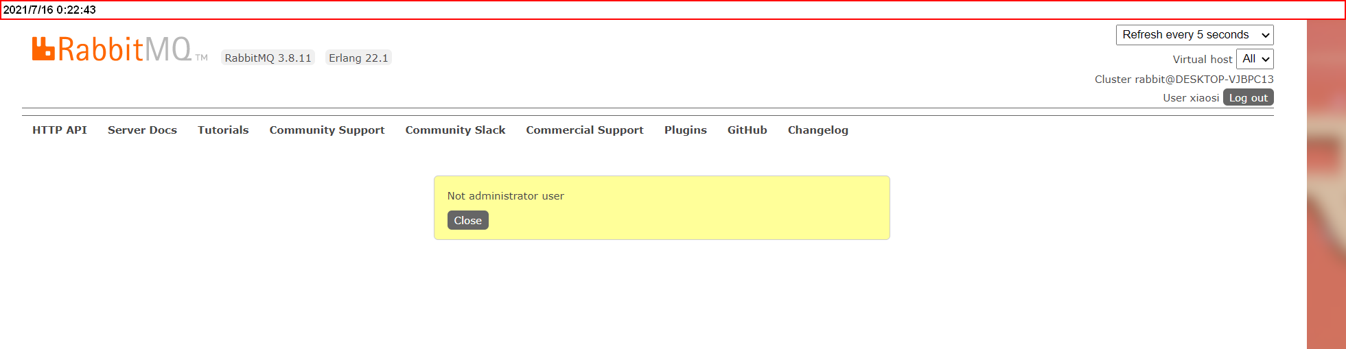 E:\Program Files\RabbitMQ Server\rabbitmq_server-3.8.11\sbin>rabbitmqctl set_user_tags admin administrator