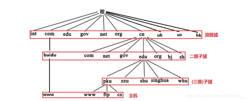 ? ? ? ? 域名空间用于指定组织名称的域的层次结构,不同域间以英文句点隔开,如www.baidu.com中的com、baidu、baidu.com都是域。