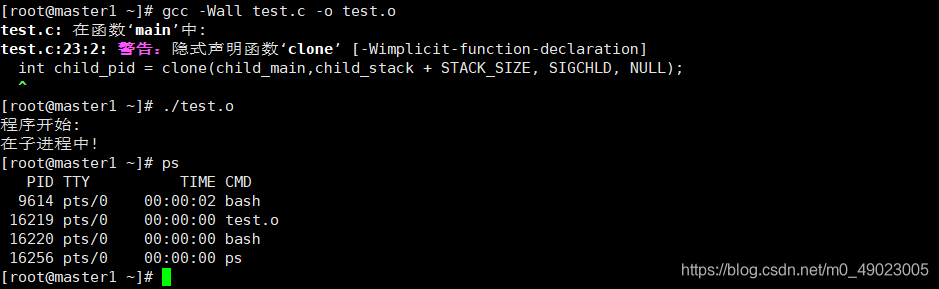 [root@master2 ~]# gcc -Wall test.c -o pid.o