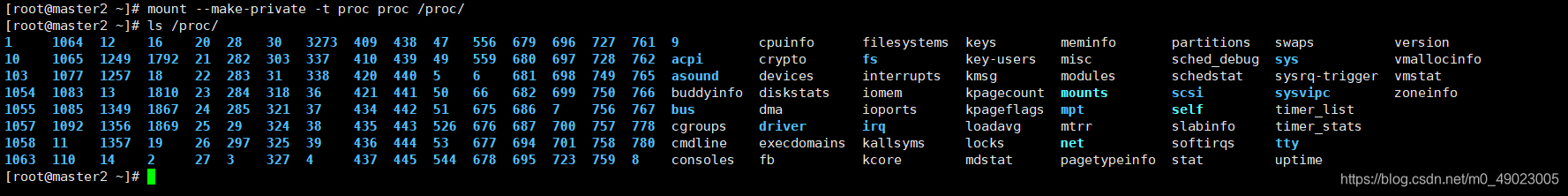 好了,我们现在在子进程中使用私有挂载的参数来挂载proc目录