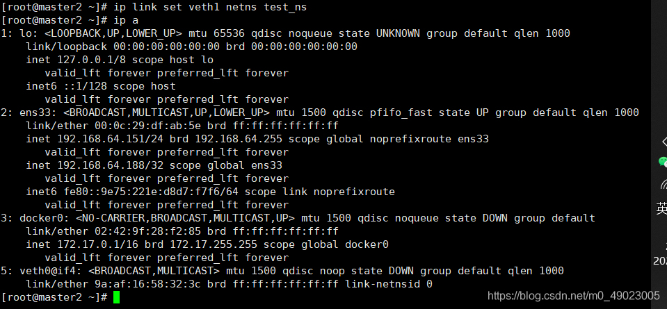 [root@master2 ~]# ip link add veth0 type veth peer name veth1
