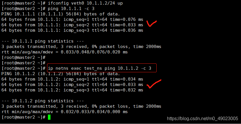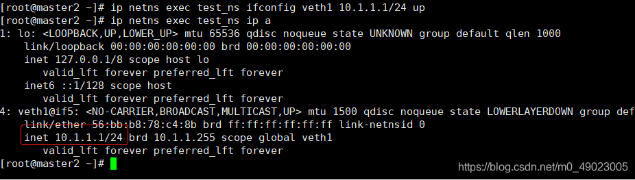 [root@master2 ~]# ip netns exec test_ns ip link set dev lo up