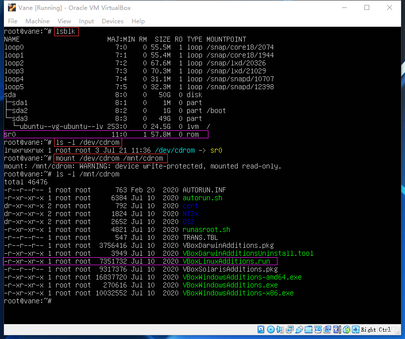 2.将iso挂载到linux目录下 (1)首先检查挂载的光驱路径,使用命令:lsblk ? ? ? ? 可以看到光驱路径是/sda/sr0 (2)一般来说linux光驱的默认挂载路径是/dev/cdrom,使用命令:ls -l /dev/cdrom ? ? ? ? 可以看到是有个链接存在,并且指向sr0 (3)我们将其(/dev/cdrom)挂载到我们自定义的目录(/mnt/cdrom) ? ? ? ? 先建立一个目录/mnt/cdrom,使用命令:mount /dev/cdrom /mnt/cdrom ? ? ? ? 实现将光驱路径(/dev/cdrom)mount到我们自定义的路径上(/mnt/cdrom)