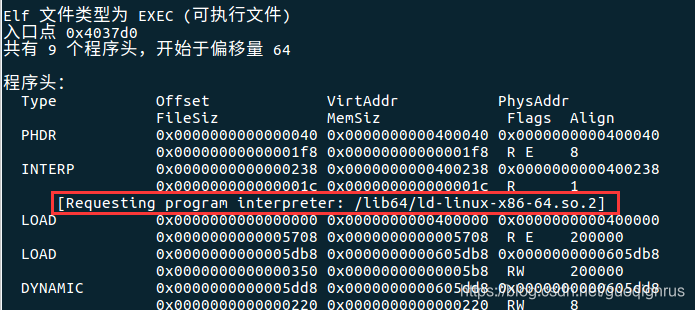 // 1 /usr/lib64/ld-linux.so.2 程序app要使用加载器的绝对路径