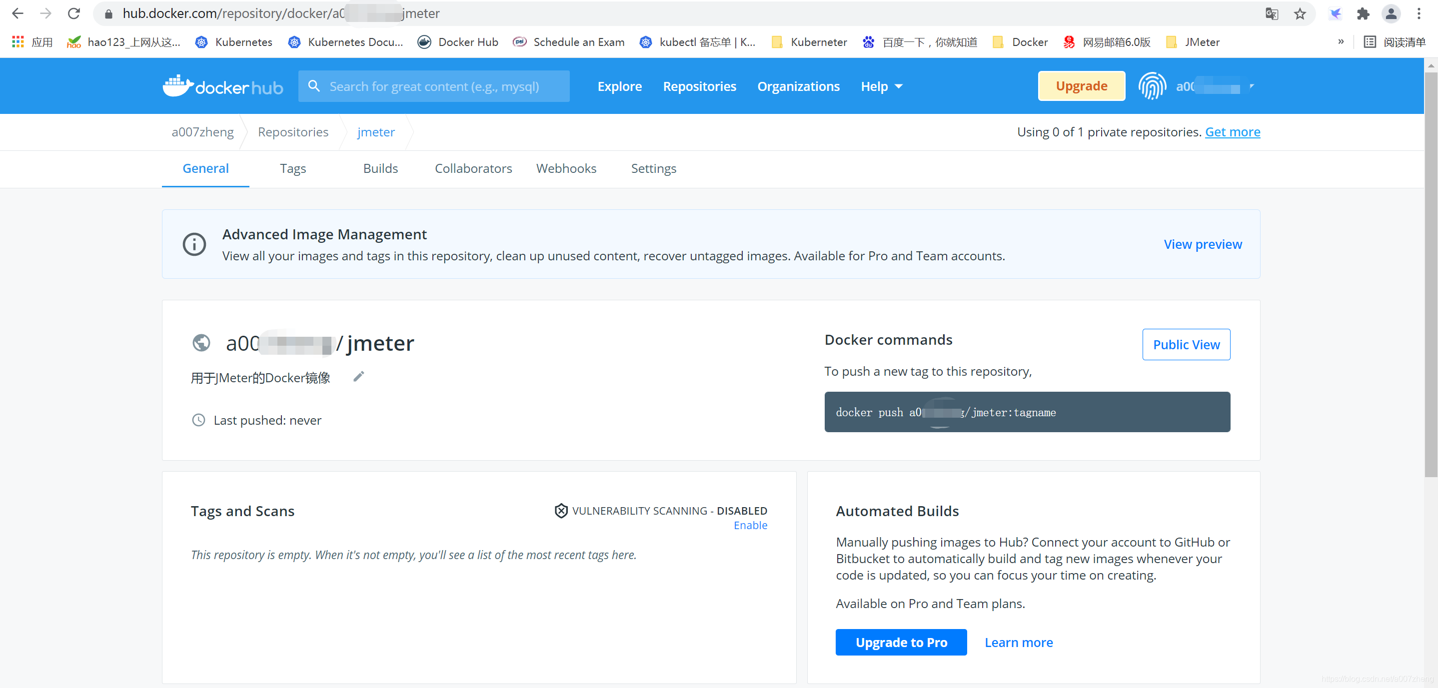 可以看到推送命令:docker push XXX/jmeter:tagname