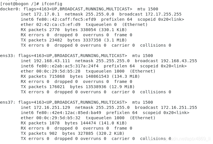 然后数据被转发到172.17.0.1:443端口,实际上172.17.0.1与172.16.251.129是同一个实体系统中的不同网卡上的IP地址(如下图所示),所以访问172.17.0.1的443端口其实就是直接访问了开始172.16.251.129映射的www.healer.com