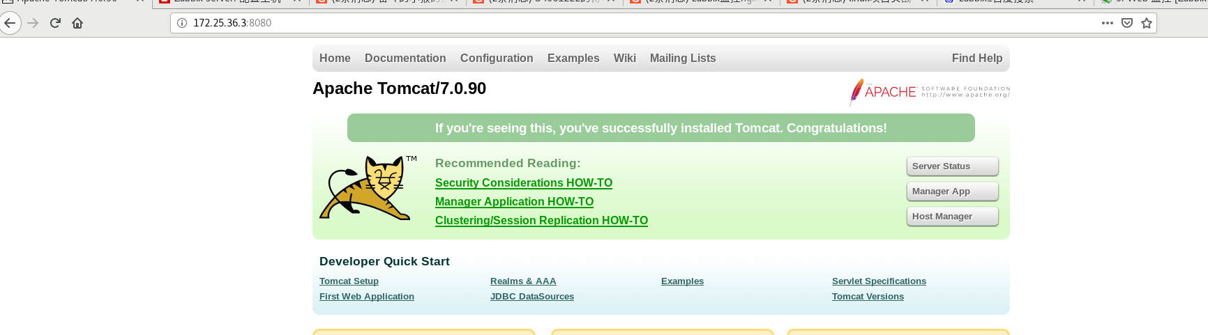 监控原理:  1、当Zabbix-Server需要知道java应用程序的某项性能的时候,会启动自身的一个Zabbix-JavaPollers进程去连接Zabbix-JavaGateway请求数据,而ZabbixJavagateway收到请求后使用"JMXmanagementAPI"去查询特定的应用程序,而前提是应用程序这端在开启时需要"-Dcom.sun.management.jmxremote"参数来开启JMX远程查询。Java程序会启动自身的一个简单的小程序端口向Zabbix-JavaGateway提供请求数据。 2、配置Zabbix监控Java应用程序的关键点在于:配置Zabbix-JavaGateway、让Zabbix-Server能够连接Zabbix-JavaGateway、Tomcat开启JVM远程监控功能等 ; 3、Java-gateway不安装在zabbix-server上也可以,仅仅是作为一个采集器,tomcat监控主要是监控JVM。 我们在server1上安装java模块插件  默认java应用监听端口10052  编辑 zabbix_server.conf文件,设定java监听网关指向zabbix-server主机并设置处理的进程数    将真机的tomcat压缩包传给server3,Tomcat是Apache 服务器的扩展,但运行时它是独立运行的,所以当你运行tomcat 时,它实际上作为一个与Apache 独立的进程单独运行的。  server3解压缩,创建软链接  编辑tomcat脚本,设定JMX监听端口为8888,vim /usr/local/tomcat/bin/catalina.sh   然后安装java  开启脚本  查看端口  网页测试tomcat是否启动成功,访问172.25.9.3:8080端口(Apache Tomcat web server安装后,默认的服务端口就是8080)  点击server3,选择模板,将java TMX加入模板  将JMX端口写入  此时发现server3的JMX绿色亮了  查看监控图形,出现数据
