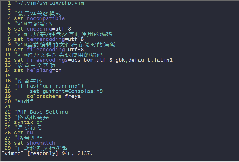 配置文件这块,可以手动配置,可以将配置好的文件上传到代码托管平台或者网盘文件再或者U盘,方便配置时,可以拿来即用。这块下载两个文件,一个是配置文件vimrc,另一个是配置文件用到的主题文件freya.vim。