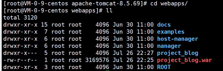 war 包的名字就是后续外网访问的 一级路径 http://xiaoyaovo.top:8080/project_blog/blogList