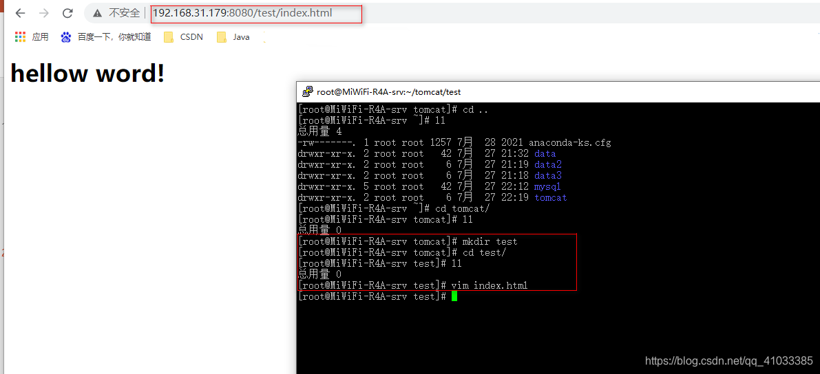 ? ? 在/root目录下创建tomcat目录用于存储tomcat数据信息