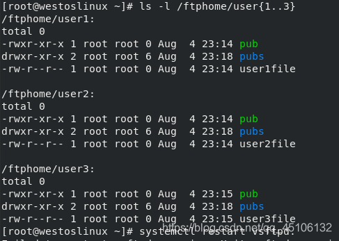 chmod 775 ../pub chgrp ftp ../pub vim /etc/vsftpd/vsftpd.conf?? ??? ?##编写配置文件指定用户配置独立文件为westos ?? ?user_config_dir=/etc/vsftpd/westos