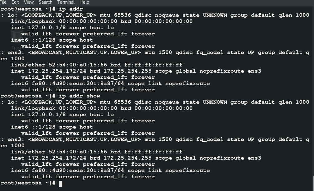 nmcli connection add type ethernet con-name westos ifname ens3 ip4 172.25.254.130/24