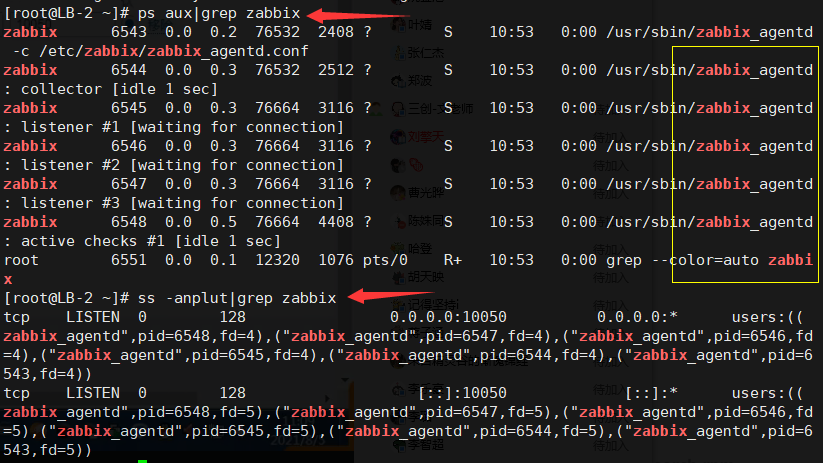 [root@LB-2 ~]# ss -anplut|grep zabbix # 查看端口