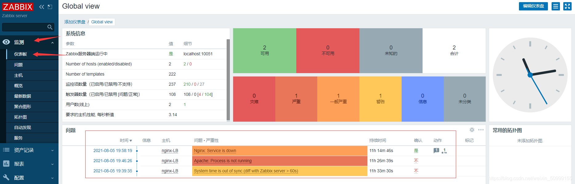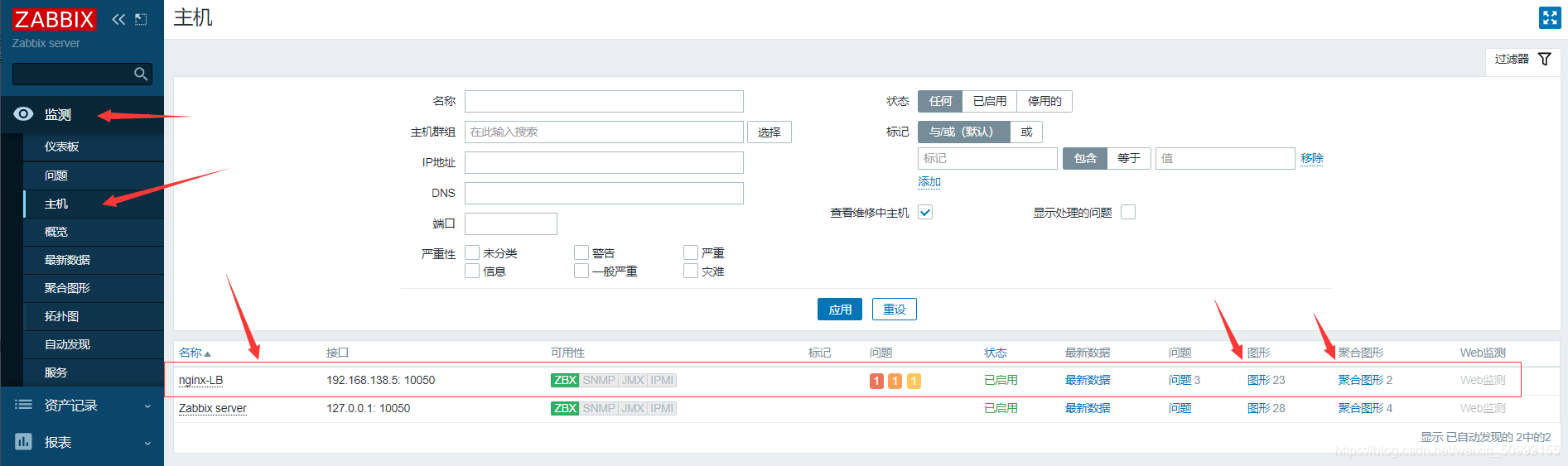 3、查看zabbix监控是否变化 看仪表盘——看聚合图形