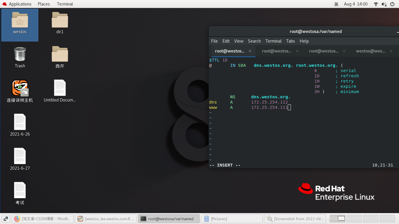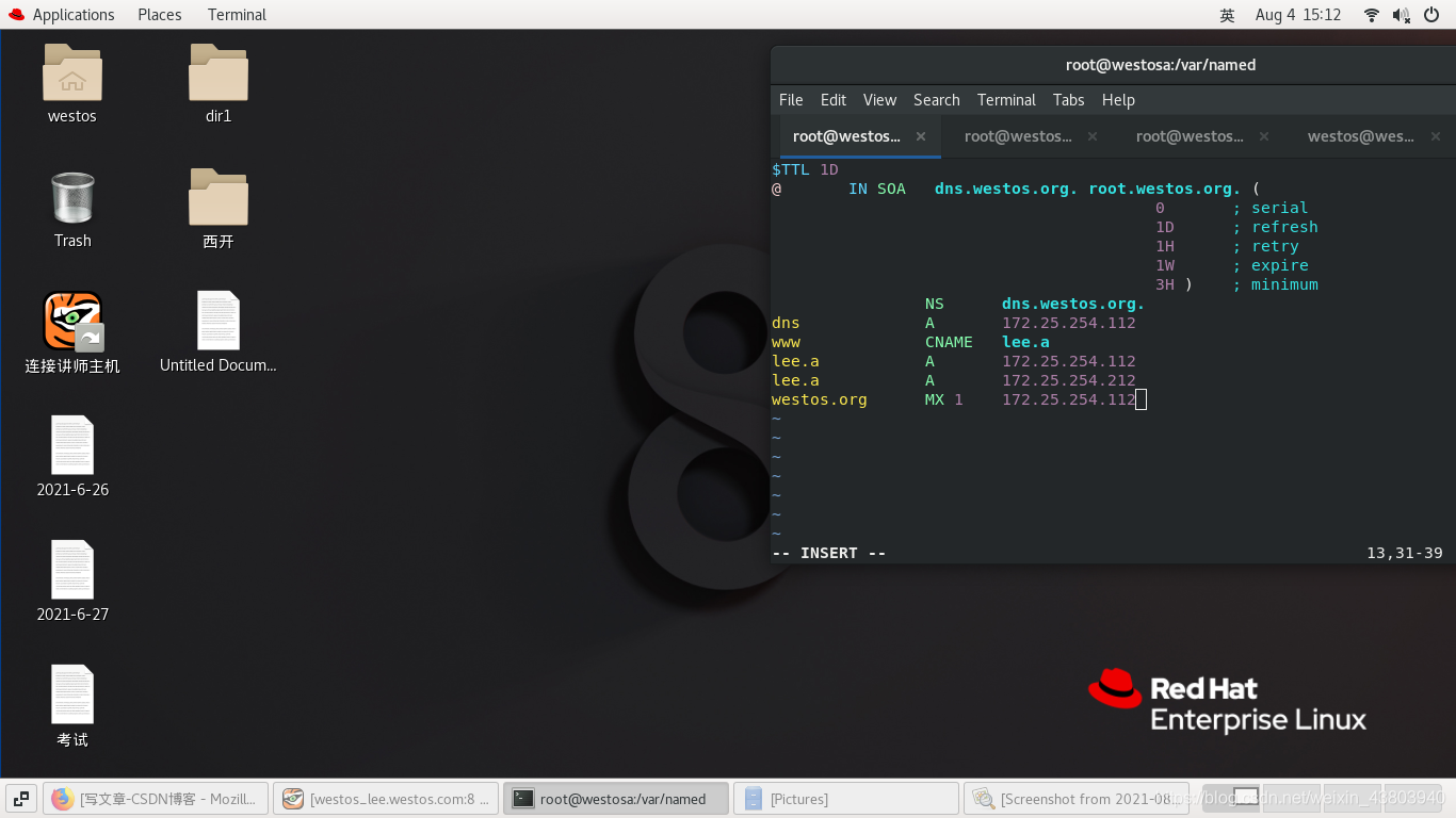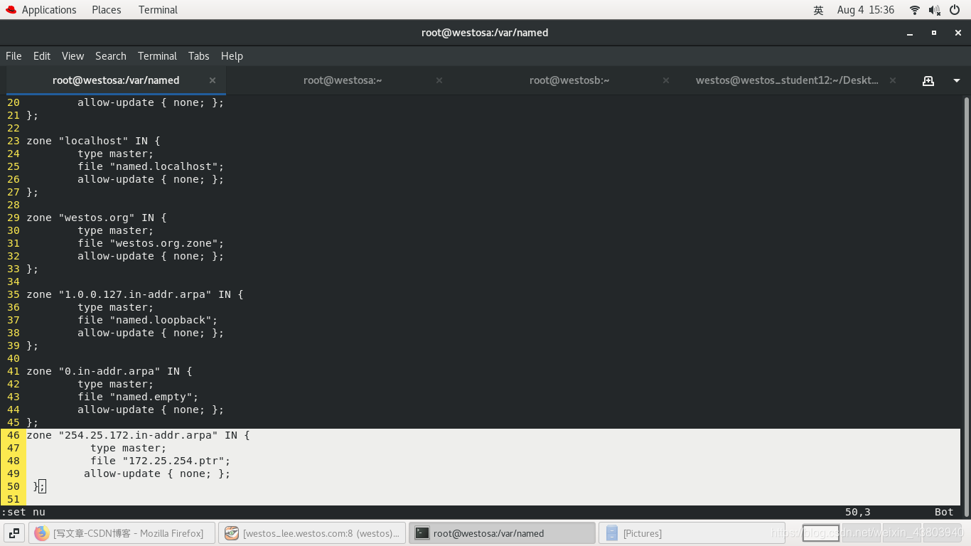 ? cd /var/named/ ?cp -p named.loopback 172.25.254.ptr ?vim 172.25.254.ptr