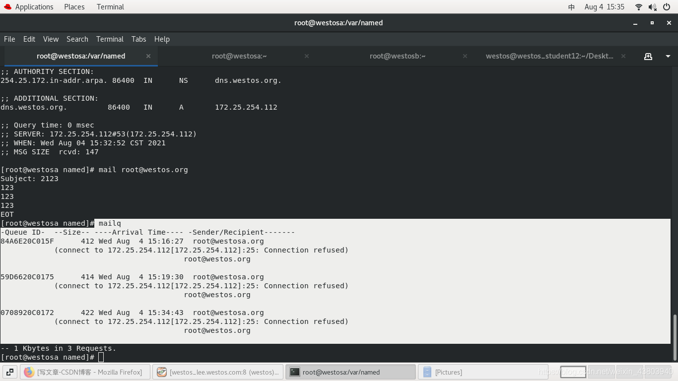 原因:mail root@westos.org会失败,因为主机不认,不知道它ip是什么