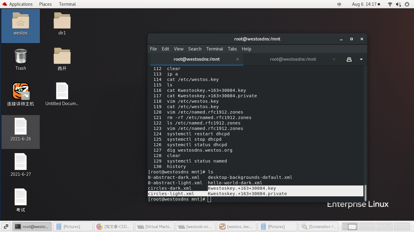 测试是否成功:删除westosb中原有的网络连接,为其添加工作方式为dhcp的网络连接,重启网络连接后westosb自动获取到IP 2.配置DHCP+DNS