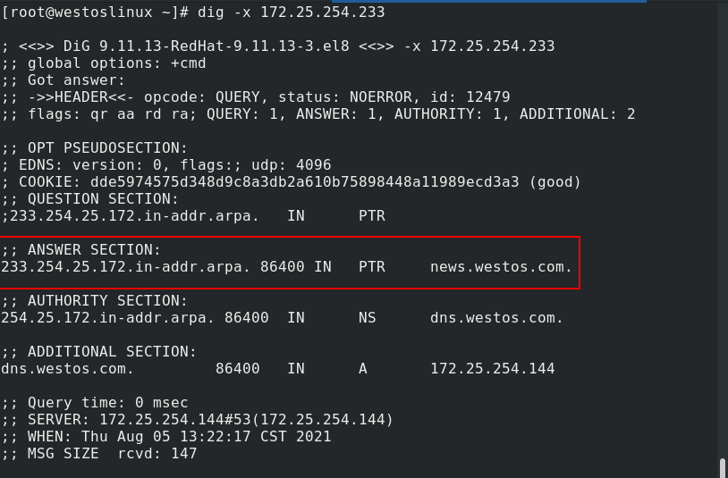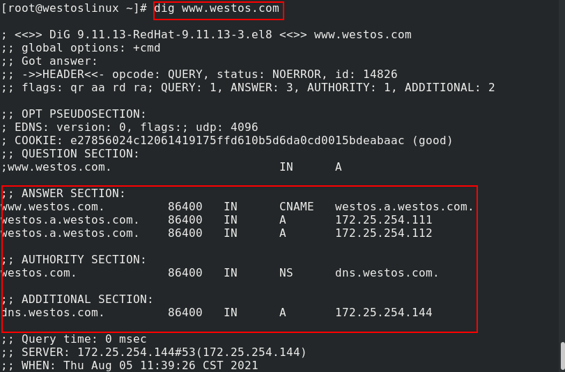 dig?www.westos.com? ? ? ? ? ? ##地址详细解析信息