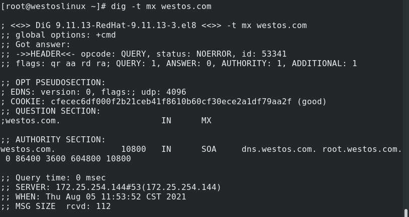 westos.com.????????????? MX 1???????????? 172.25.254.144???? ##邮件解析记录