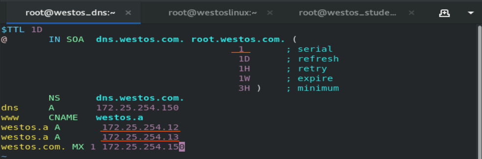 @?? ?IN SOA?? ?dns.westos.com. root.westos.com. (