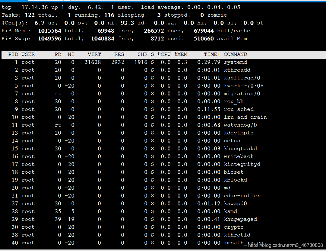 top : 以全屏交互式的界面显示进程排名,及时跟踪包括CPU、内存等系统资源占用情况,默认情况下每三秒刷新一次