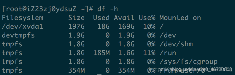 - df -h:? ? ? ? ? ? ? ? ? ? ? ? ?查看每个根路径的分区大小