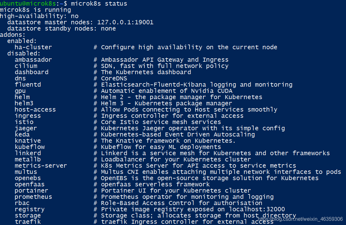 4.使用如下代码重启,等待一会就能使用microk8s?status查看状态了: