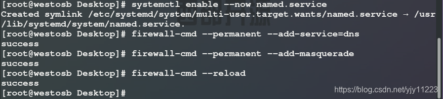 systemctl enable --now named firewall-cmd --permanent --add-service=dns firewall-cmd --now --add-masquerade firewall-cmd --reload
