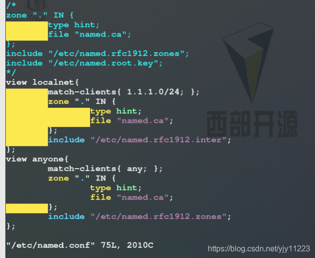 vim /etc/named.conf #zone "." IN { ##?????? type hint; ##?????? file "named.ca"; ##}; # ##include "/etc/named.rfc1912.zones"; ##include "/etc/named.root.key";