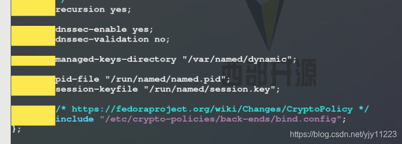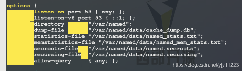 vim /etc/named.conf 11???????? listen-on port 53 { any; };?? ??? ?#在本地所有网络接口上开启53端口 19???????? allow-query???? { any; };?? ??? ? ? #允许查询A记录的客户端列表,允许查询IP域名的客户端列表 34???????? dnssec-validation no;?? ??? ? ? ? #禁用dns检测使dns能够缓存外部信息到本机