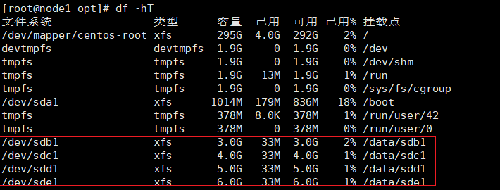node4 192.168.220.45 sdb1、sdc1、sdd1、sde1 /data