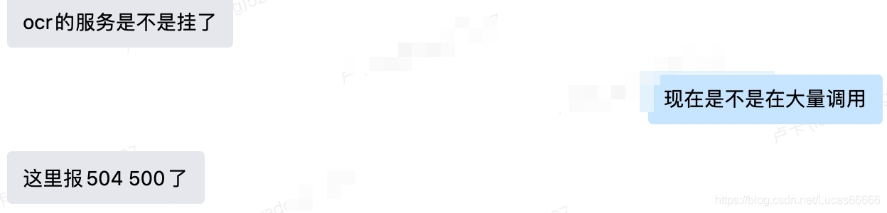 思路一解决方案: 确实也是如此,如果你的服务处理非常快且不是特别消耗资源那么确实不会在目前的并发下出现密集的504问题。 那么先优化目前的接口。 接口是提供图像ocr功能,会加载深度学习模型的模型文件,代码中每一次请求都会重新实例化一个对象,这样做就会存在两个问题: 1,每次请求都去load 一次模型文件,这部分IO操作其实还是比较耗时的,而且是没有必要; 2 每个请求都实例化一个对象,那么在高并发下,系统的内存会很吃紧。 所以针对这个问题,定义了一个全局的对象,让该进程的所有请求都用同一个对象去处理。 -