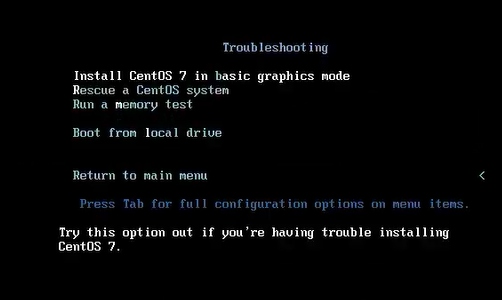 排除启动类故障 修复MBR扇区故障 MBR位于第一块硬盘(/dev/sda)的第一一个物理扇区处,总共512字节1.备份MBR扇|区数据到其它磁盘( / dev / sdb1) mkdir / backup mount / dev / sdb1 /backup dd if=/dev/sda of=/backup/mbr.bak bs=512 count=1 2.模拟破坏MBR引导扇区 dd if=/dev/zero of=/dev / sda bs=512 count=1 3.引导界面进入急救模式,从备份文件中恢复MBR扇区数据先加载好光盘镜像,重启操作系统, 当出现安装向导界面时,选择"Troubleshooting"选项, 再选择"Rescue a CentOS Linux system"选项,进入急救模式选择"l"选择continue并按Enter 键继续 再次按Enter键后将进入带"sh-4.2#"提示符的Bash Shell环境 sh-4.2#mkdir / backupdir sh-4.2#mount / dev / sdb1/backupdir #挂载带有备份文件的分区 sh-4.2# dd if=/backupdir/mbr.bak of=/dev / sda #恢复备份数据. sh-4.2#exit #执行exit命令退出临时shell环境,系统将会自动重启