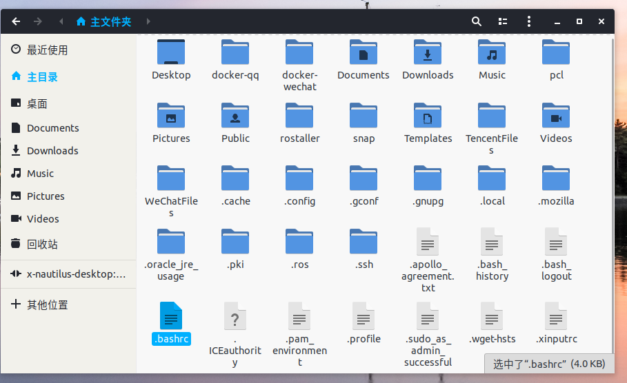 在Download文件夹下找到这个包,拉到home下解压 重命名为apollo