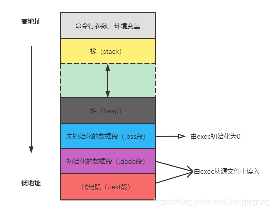 ?一个典型的Linux C程序内存空间由如下几部分组成: