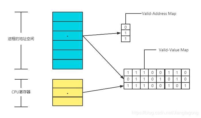 对于进程的整个地址空间中的每一个字节(byte),都有与之对应的 8 个 bits;对于 CPU 的每个寄存器,也有一个与之对应的 bit 向量。这些 bits 负责记录该字节或者寄存器值是否具有有效的、已初始化的值。