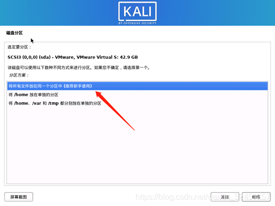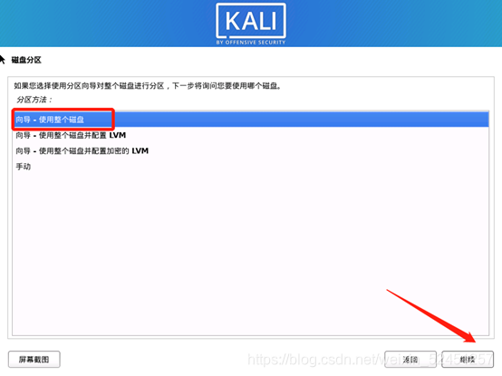 - 磁盘分区,使用整个磁盘。