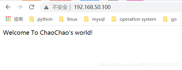 root@d98d2891a17b:/usr/share/nginx/html# echo "Welcome To ChaoChao's world!" >index.html #更改index.html文件