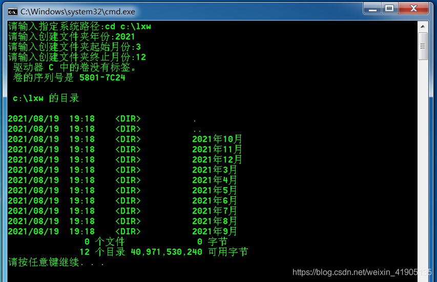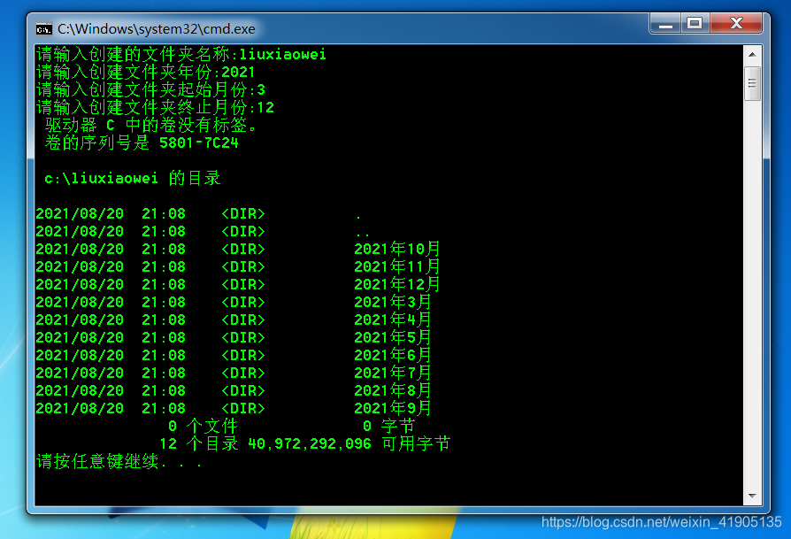 ????????大家好,最近学习Linux系统操作命令,批量创建文件夹和目录($mkdir? ?{2010..2021}-0{1..9} {2010..2021_-{10..12}),突然联想到Windows系统是否可以实现。答案是肯定的,查阅相关资料发现有一条类似命令,按数字编号创建:for /l? %i in (num1,num2,num3)? do mkdir filename%i。num1是初始数字,num2步进值,num3是终止数字。? ?好东西一定要跟朋友分享,于是把此条命令发给好兄弟,可是兄弟说,他不太懂这个命令,让我能不能再细化一下,按指定路径创建?于是我编了一个批处理程序,经过调试可以实现。我编了两个版本的批处理,一个是根据指定路径下创建批量文件夹,一个是在选定盘符随意创建路径,然后再批量创建文件夹。
