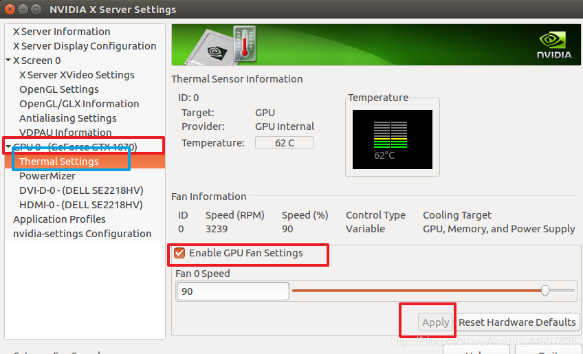 启动电脑后,执行下面指令,启动nvidia-settings: