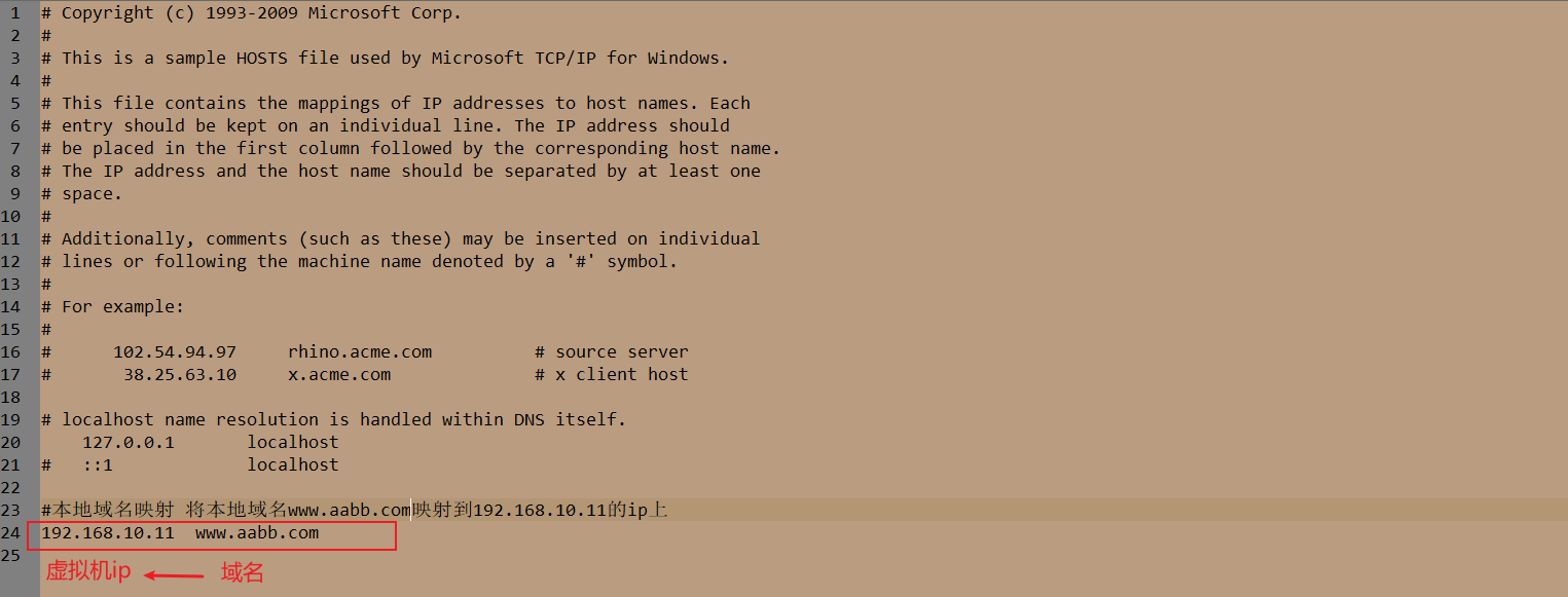 接下来就对上面访问虚拟机(ip为192.168.10.11)上的nginx做本地域名映射虚拟机IP