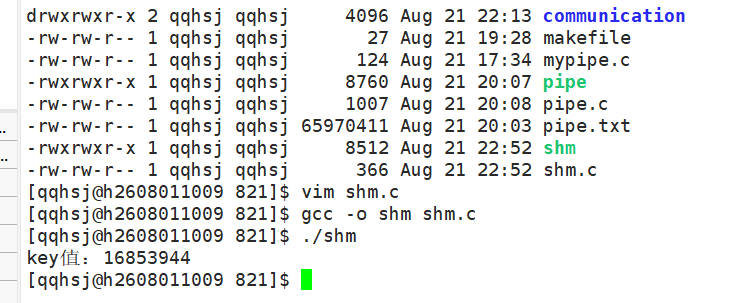 IPC_CREAT|IPC_EXCL:承接上面,如果内核中存在键值与传入的key值相等的共享内存,则报错。如果从文件的角度理解就是:打开一个目标名字为key的文件,没有的话就创建,有的话直接报错,说key已经存在了