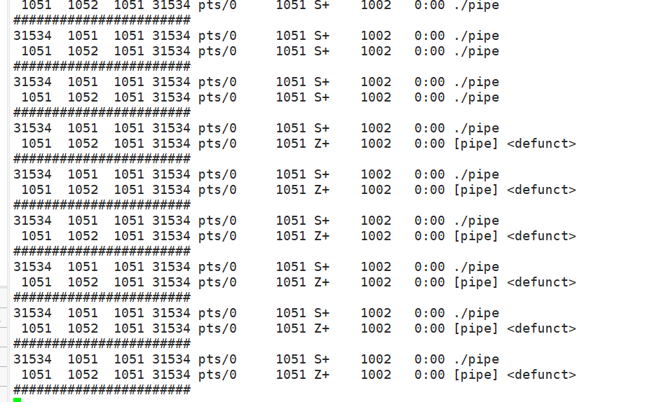 while :; do ps axj | grep pipe | grep -v grep; echo "#######################";sleep 1;done