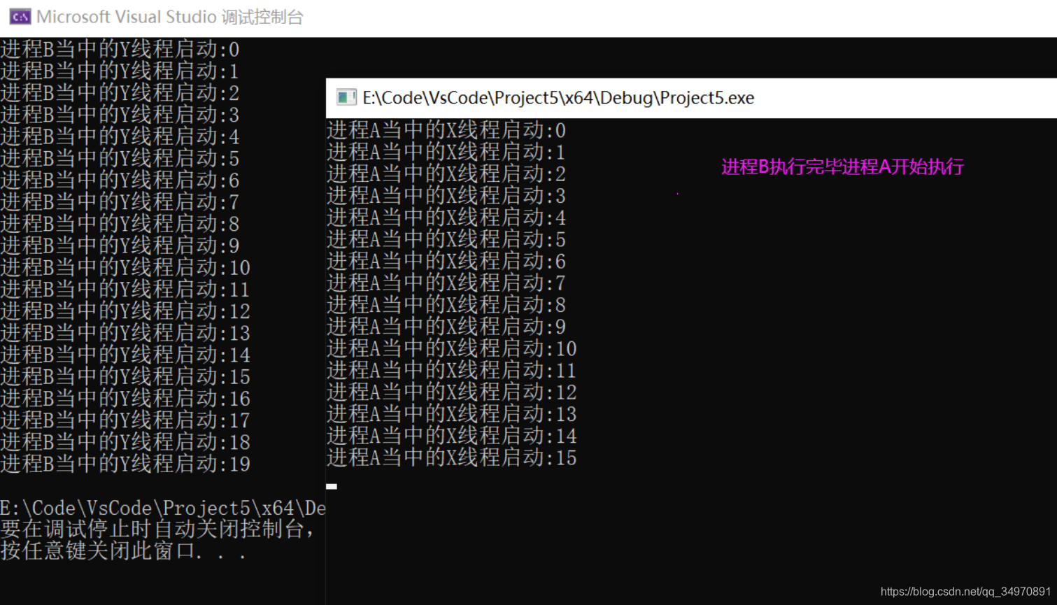 printf("进程B当中的Y线程启动:%d \n", i);
