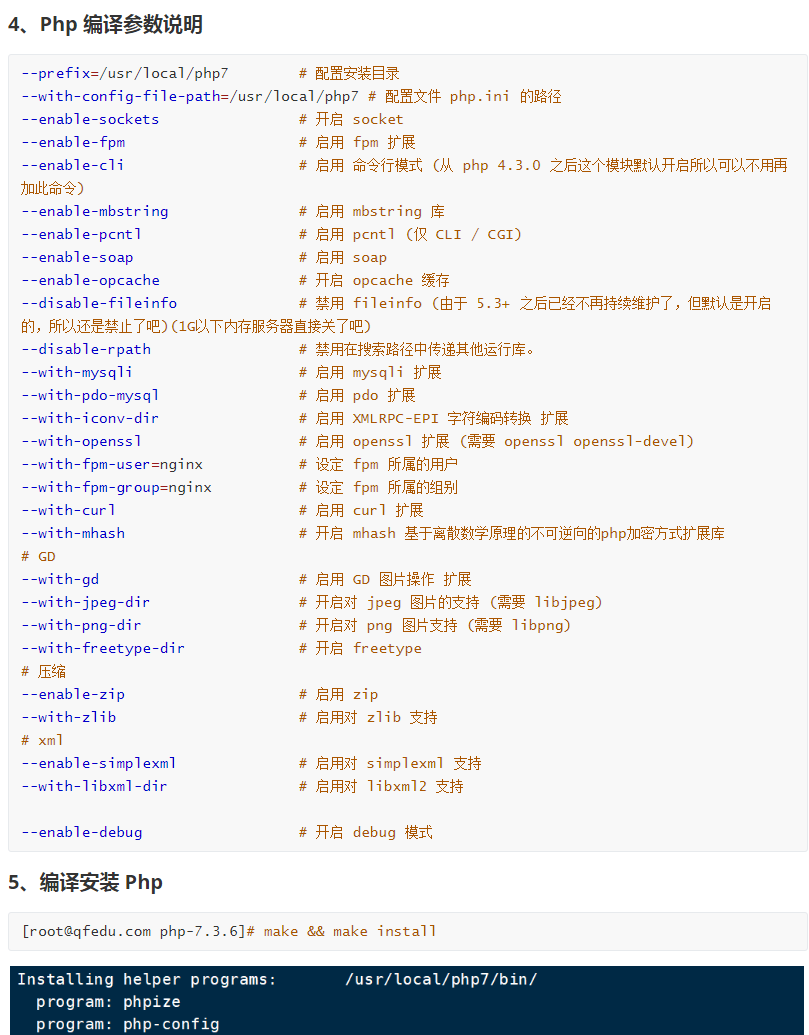 **4、Php 编译参数说明**