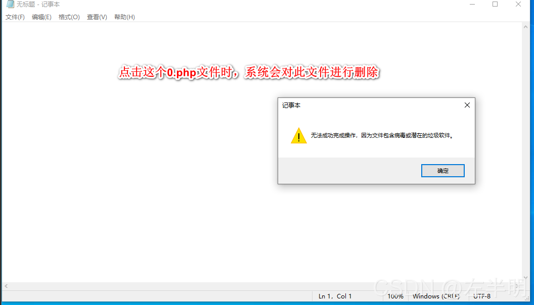 ?5、造成这样错误的原因是,虚拟机内搭建靶场的操作系统防火墙未全部关闭,防火墙发现木马文件,进行了查杀