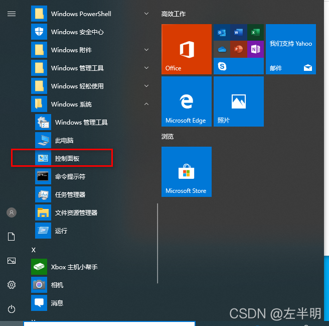 1、点击计算机开始位置,Windows系统中的点击控制面板