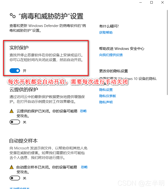 ?8、将实时保护关闭,这个实时保护会在每次系统开机时会自动开启,每次开机后,若不关闭,就则会继续删除木马文件,建议每此开机时将其关闭