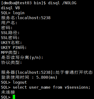 LOGIN 登录主库建立会话 LOGOUT 注销会话。断开连接而不退出 DIsql