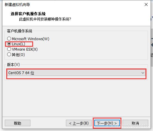 - ?客户操作系统选择Linux,版本选择CentOS 7 64位,点击下一步? ??